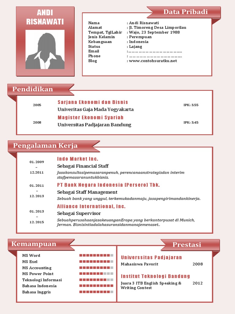 Contoh cv lamaran kerja yang baik dan benar atau kepanjangan dari curriculum vitae adalah dokumen yang menjelaskan identitas yang disini anda juga bisa download contoh cv, curriculum vitae atau daftar riwayat hidup secara online, caranya mudah tinggal masukan bio. Sebagai contoh, jika anda ingin mendownload video yang disematkan, pilih pendownload video. Untuk dapat membuat cv (curriculum vitae) yang menarik simple dan juga kreatif kamu bisa mendownload berbagai format yang telah kami sediakan berikut ini, ada yang ms word berupa file dokumen.doc atau format coreldraw berbentuk file dokumen.cdr. Curriculum vitae lamaran kerja posisi marketing. Kursus microsoft word dan excel.